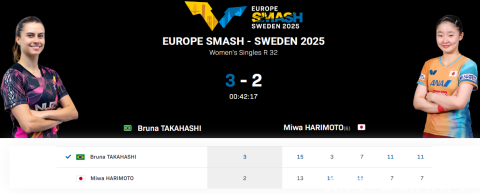 北京时辰8月21日音问,2025年WTT欧洲大满贯瑞典站络续进行。刚刚适度的女单1/16决赛的一场焦点比赛中爆出大冷门,天下排行第6的日本选手张本好意思和,2-1手抓赛点的情况下连丢2局,2-3被天下杯冠军卡尔德拉诺-雨果的女友高桥-布鲁娜逆转。